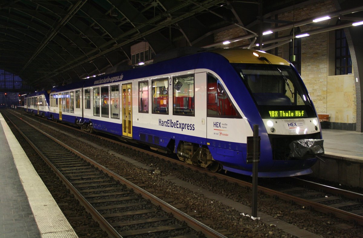 648 283-9 steht am 12.2.2017 als HEX80400 nach Thale Hauptbahnhof zusammen mit 648 785-3 als HEX80400 nach Goslar im Berliner Ostbahnhof.