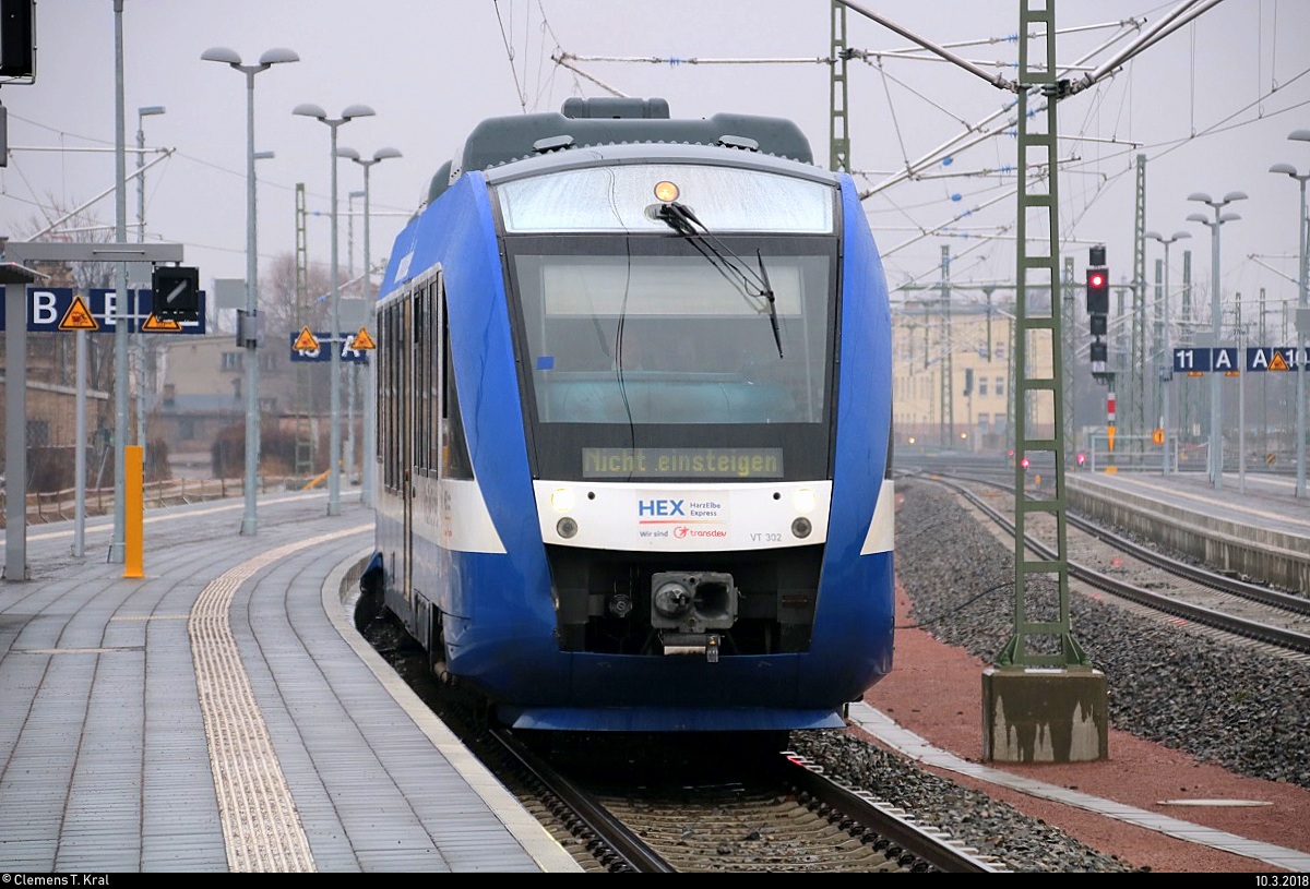 Aufgenommen im Startbahnhof Halle(Saale)Hbf auf Gleis 12 D-F als verspäteter HEX80408 (HEX 4) nach Goslar. [10.3.2018 | 7:57 Uhr]
