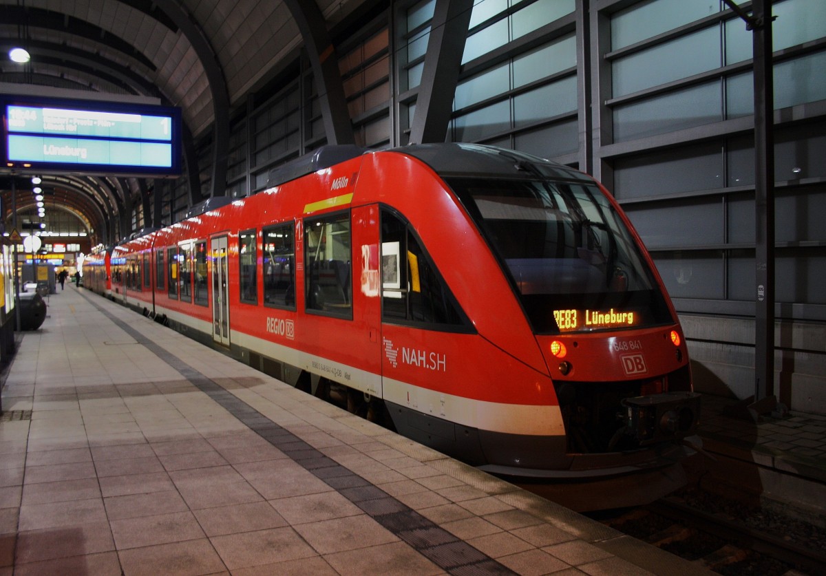 Hier 648 841-4 "Mölln" als RE83 (RE21633) von Kiel Hbf. nach Lüneburg mit 648 464-5 als RE83 (RE21633) von Kiel Hbf. nach Lübeck Hbf., dieser Triebzugverband stand am 4.2.2016 in Kiel Hbf. Alexander