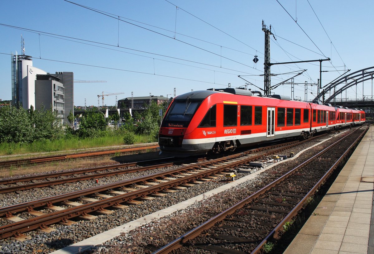 648 851-3 und 648 840-6  Lüneburg  kamen am 6.7.2016 als RE83 (RE21620) aus Lübeck Hauptbahnhof nach Kiel. Gerade zieht der Verband ins BW.