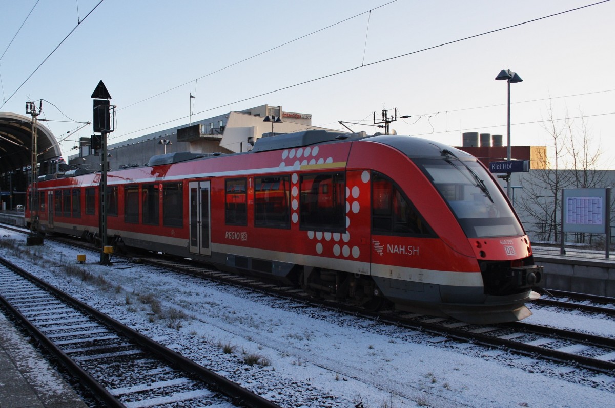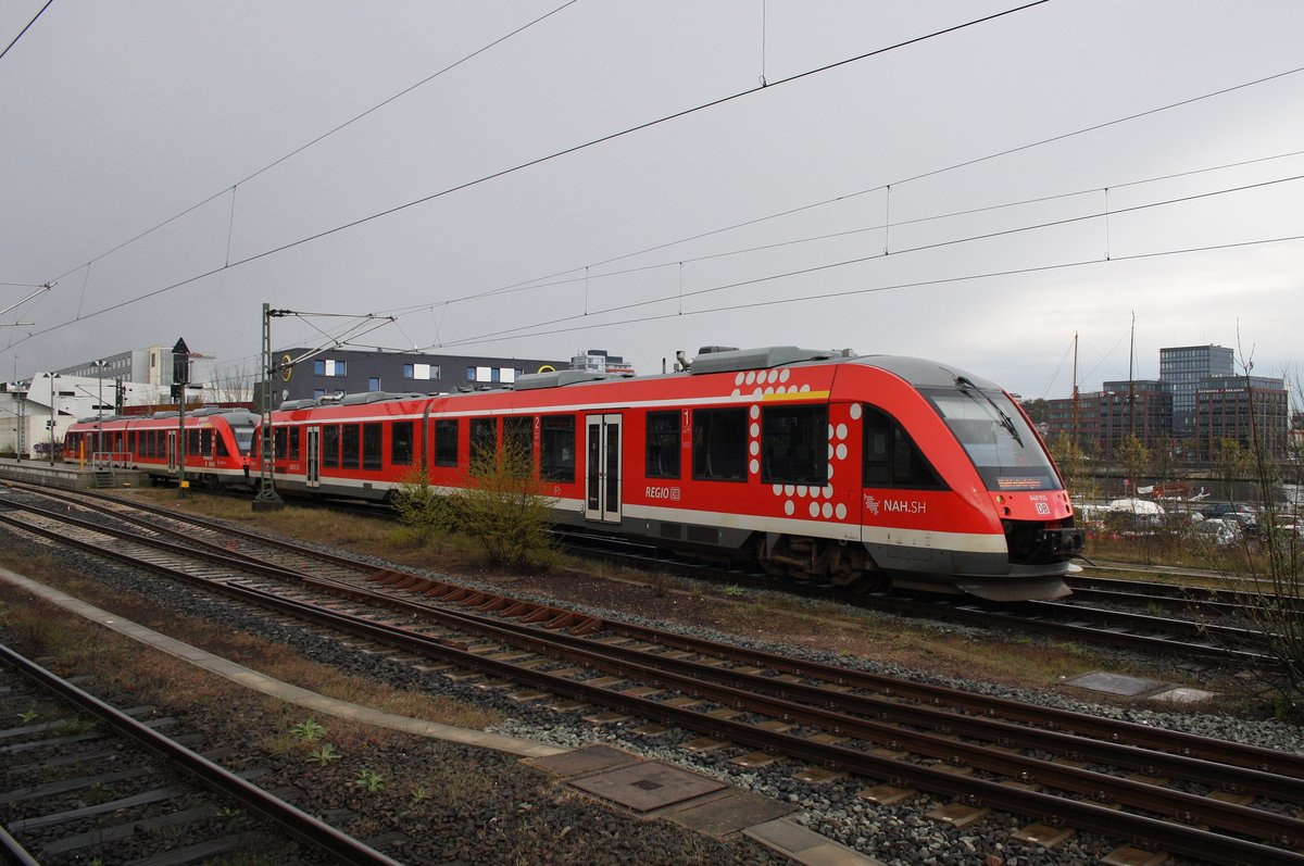 648 955-2 und 648 963-6 kamen am 26.4.2016 als RE83 (RE21620) aus Lüneburg/Lübeck Hbf. in den hohen Norden. Hier zieht der Verband aus dem Hauptbahnhof ins Kieler BW. Alexander
