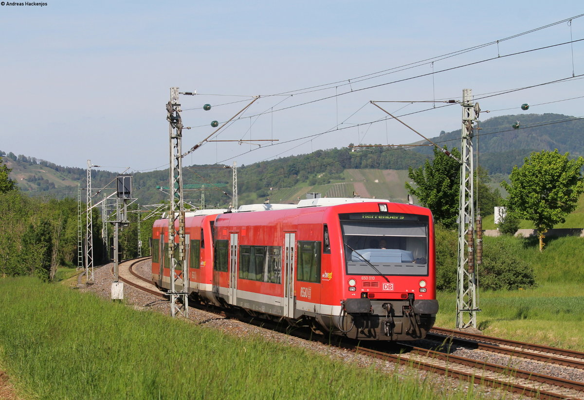 650 010-2 steht mit Schwestermaschine am 14.5.2008 in Oberlenningen abfahrtsbereit in Richtung Kirchheim bzw. Wendlingen.