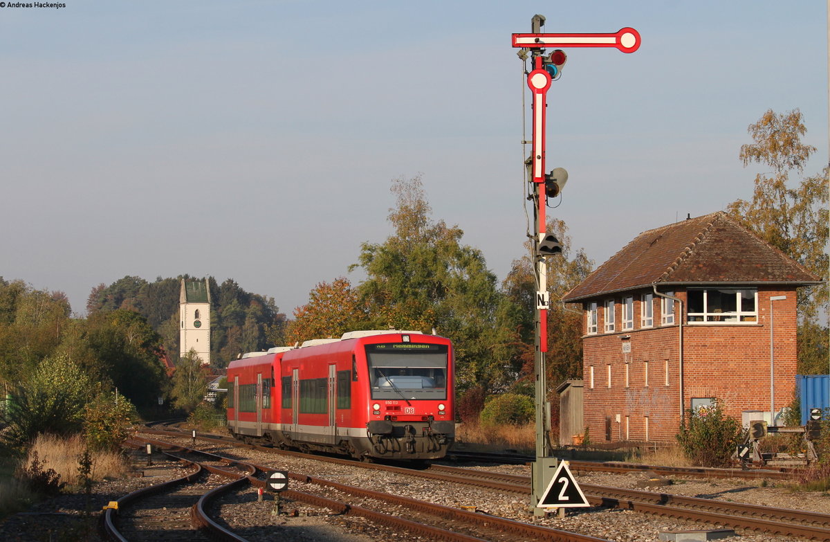 BR 650 110-0 und 650 317-1 am 19.10.06 im Bahnhof Aalen. Die Doppeltraktion fährt um 14:28 weiter als RE 22542 nach Ellwangen.