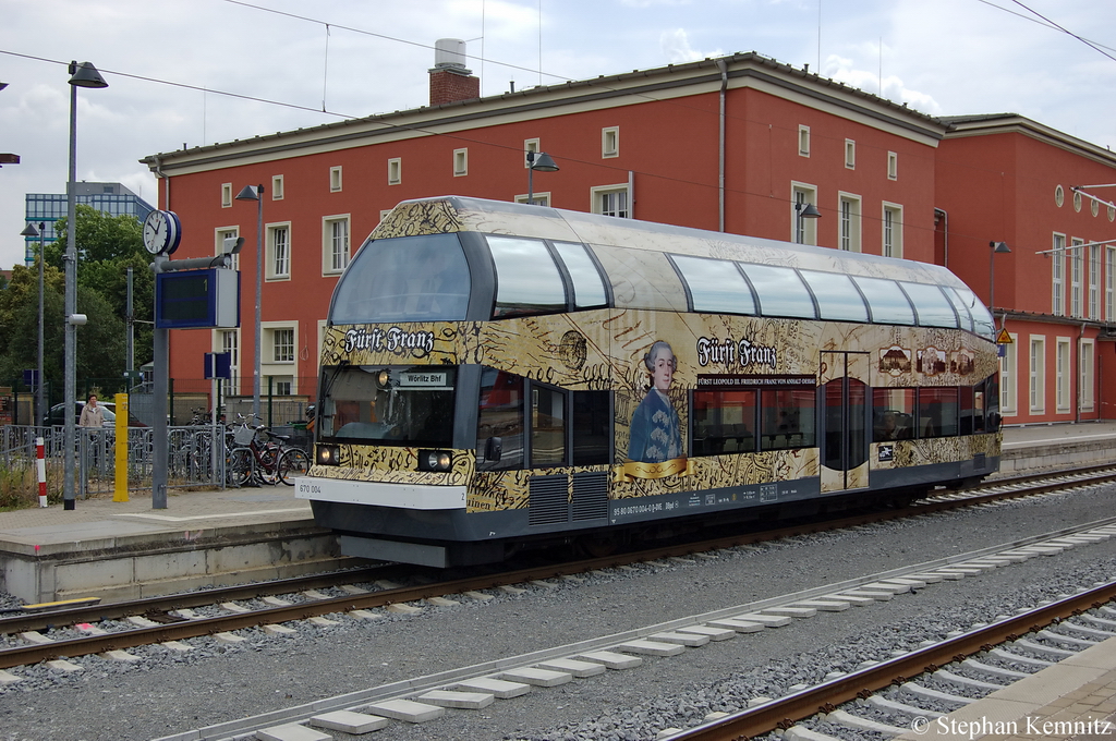 DVE 670 004-0 " Fürst Franz " Doppelstock-Schienenbus DWE, KBS 257 Dessau - Wörlitz, fotografiert in Dessau Hbf. kurz vor Abfahrt nach Wörlitz am 07.07.2012 Frank Grohe