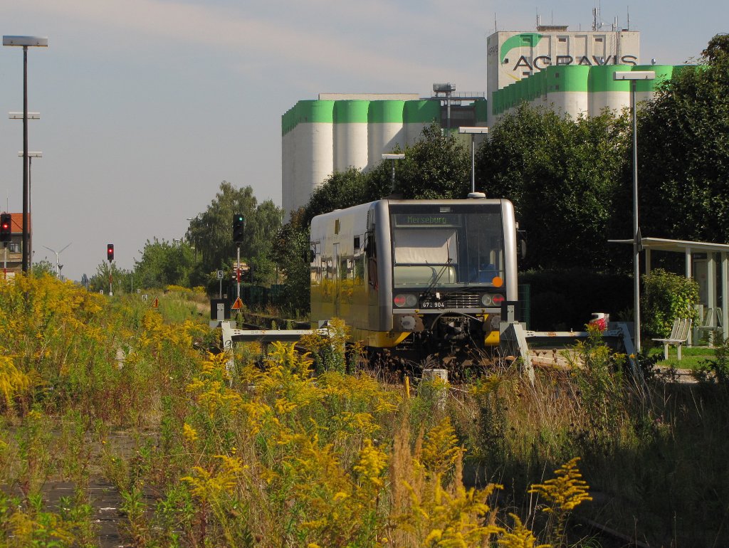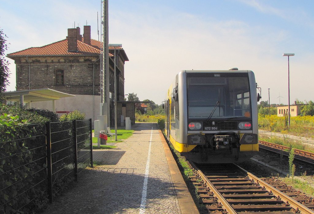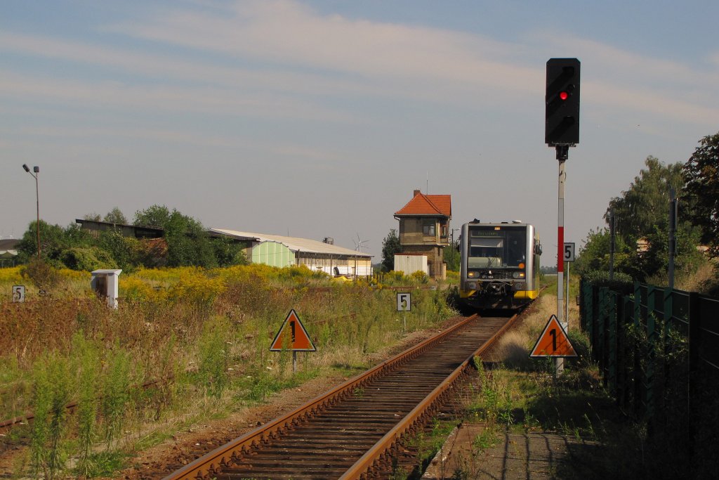 Burgenlandbahn 672 904 "HappyCorax" (672 904-0 D-DB) als RB 25815 aus Merseburg, beim passieren des Stellwerks Qo in Querfurt; 07.09.2010 Frank Thomas