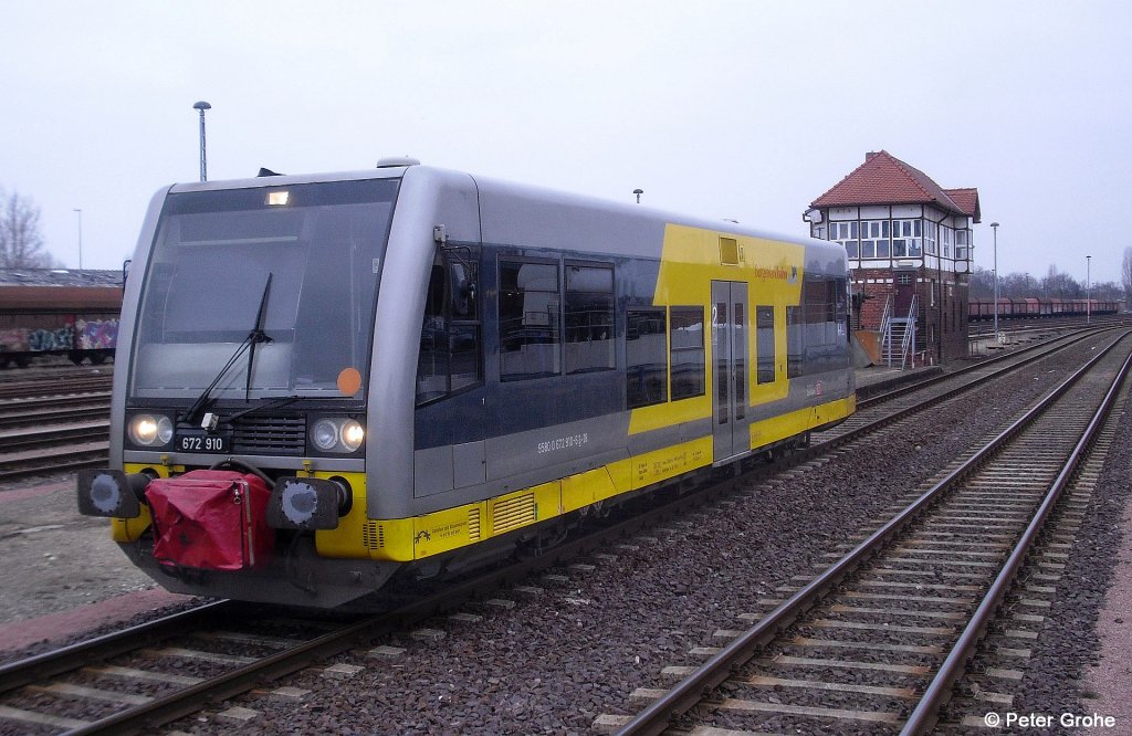 Hanseatische Eisenbahn GmbH mit ihrem Dieseltriebzug "672 910" (NVR: "9580 0 672 910-6 D-HANS") fährt zur Abstellung am 04.09.24 durch den Bahnhof Stendal Hbf. Lothar Stöckmann