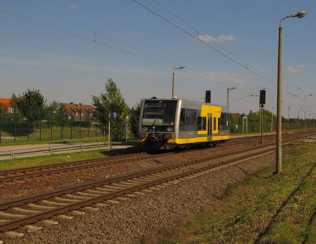Burgenlandbahn 672 911 (672 911-5 D-DB) als RB 25920 von Merseburg nach Schafstädt, am Hp Merseburg Elisabethhöhe; 07.09.2010