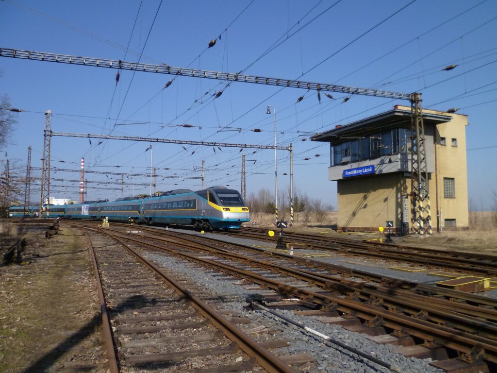 ČD 681 004-8 "Pendolino" am 13.03.2017 in Prag Hauptbahnhof.