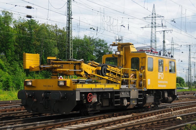 703 004-2  IFO  (Instandhaltungsfahrzeug für Oberleitungsanlagen) kreuzt die Nordausfahrt von Gremberg Gbf. (19.05.2009).