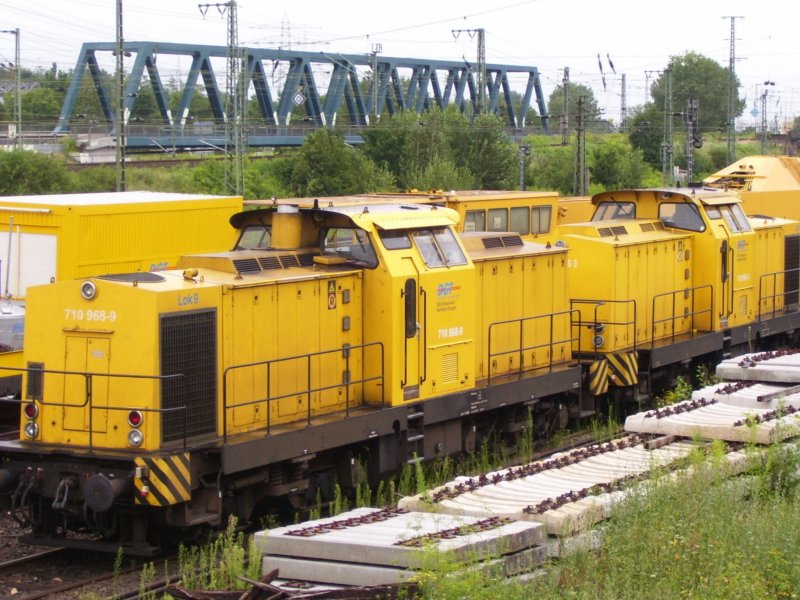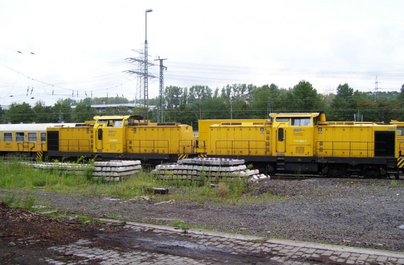 710 966-3 (ex-DR 110 966-9) + 710 964-8 (ex-DR 110 964-4) der DGT (Deutsche Gleis- und Tiefbau GmbH) auf Bahnhof Schwerte am 14-7-2001. Bild und scan: Date Jan de Vries. Date Jan de Vries
