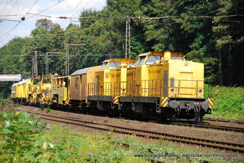 Bautrupp unterwegs! 710 967-1 und 710 965-5 mit einem langen Bauzug in Fahrtrichtung Norden unterwegs. Aufgenommen am 03.04.2011 in Eschwege West. Jens Baumhauer