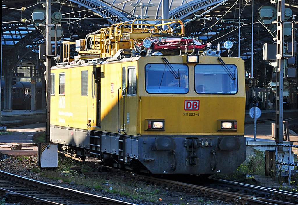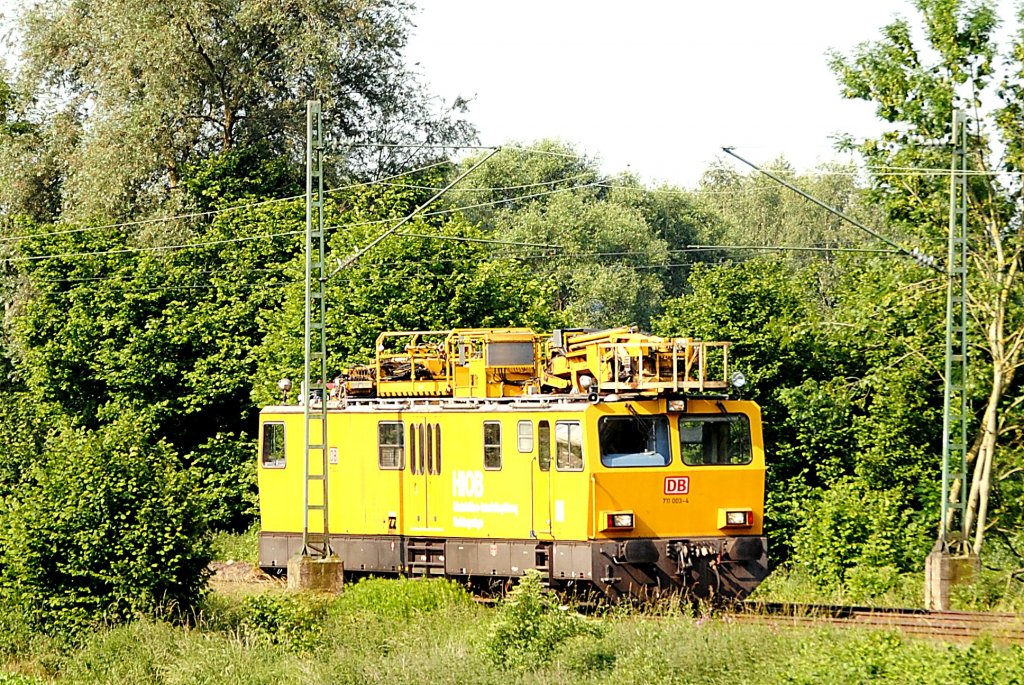 Oberleitungsrevisiontriebwagen 708 337-1 und im Hintergrund Hubarbeiten-Instandhaltungsfahrzeug 711 003-4 stehen am 19.03.2010 in Aachen Rothe Erde. Mario Schürholz