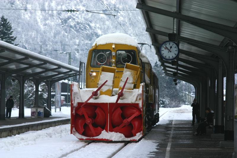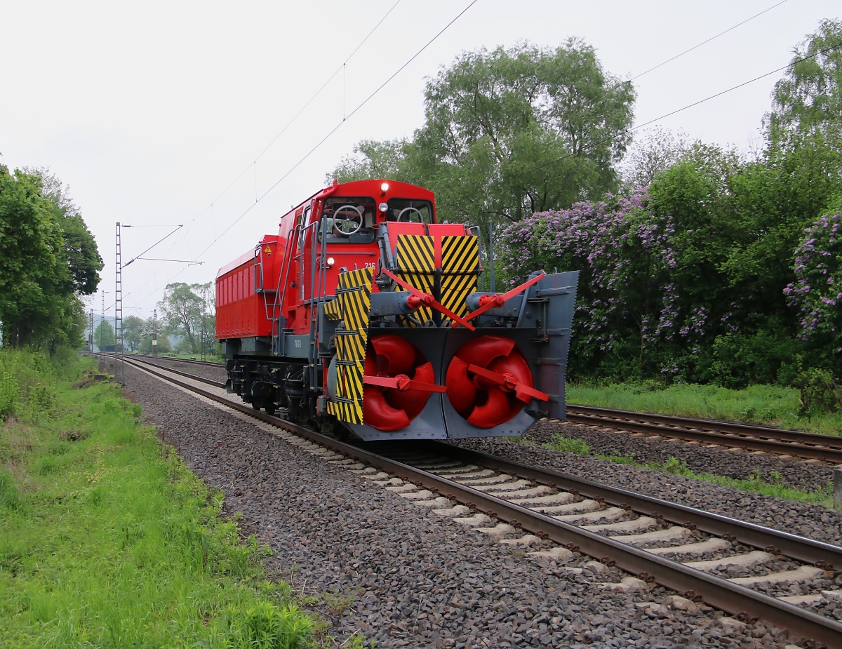 Ob sie uns wohl des schönen Wetters wegen nur den dennoch imposanten Rücken zeigt? Schneefräse 716 001-3 im Freigelände des Reisezugwagenwerks in Pasing am letzten Maitag 2008. Helmut Dimitroff