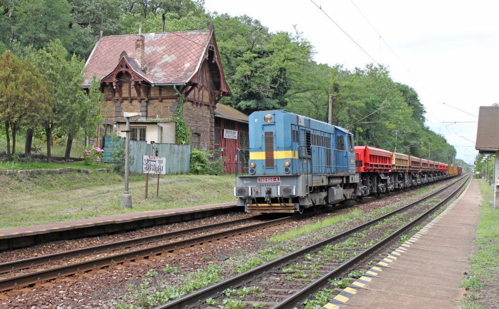 740 604-4 TSS (Tyrnauer Baugesellschaft) mit einem Bahnbauzug durchfährt Haltepunkt Bratislava-´elezná studienka/Preßburg-Eisenbrunnen, Richtung Bratislava hl. st./Preßburg Hbf.; 17.07.2012 Tomas Kowalski