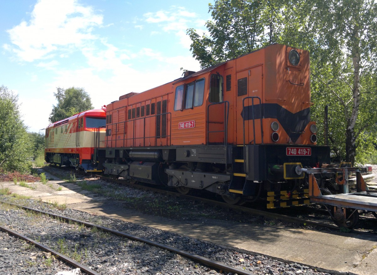 749 181-4 und 749 162-4 (IDS) zu sehen am 02.10.22 mit einem leeren Holzzug in Kynšperk n.Ohří.