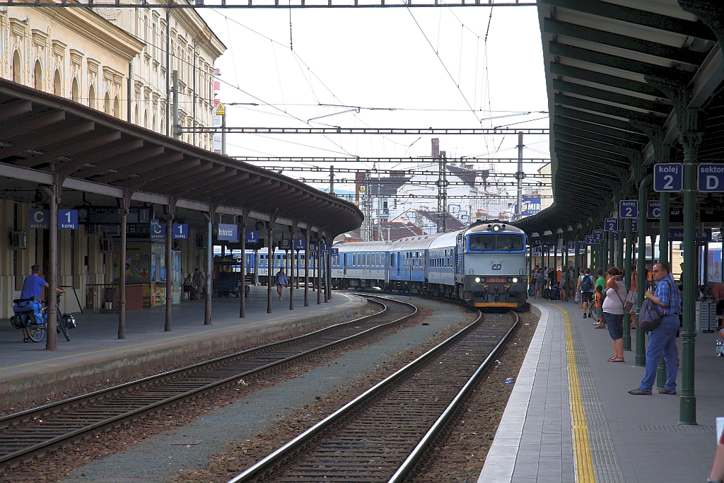 CD 750 711-4 fährt am 28.Juli 2018 mit dem R 652 nach Jihlava im Bahnhof Brno hlavni nadrazi an den Bahnsteig.