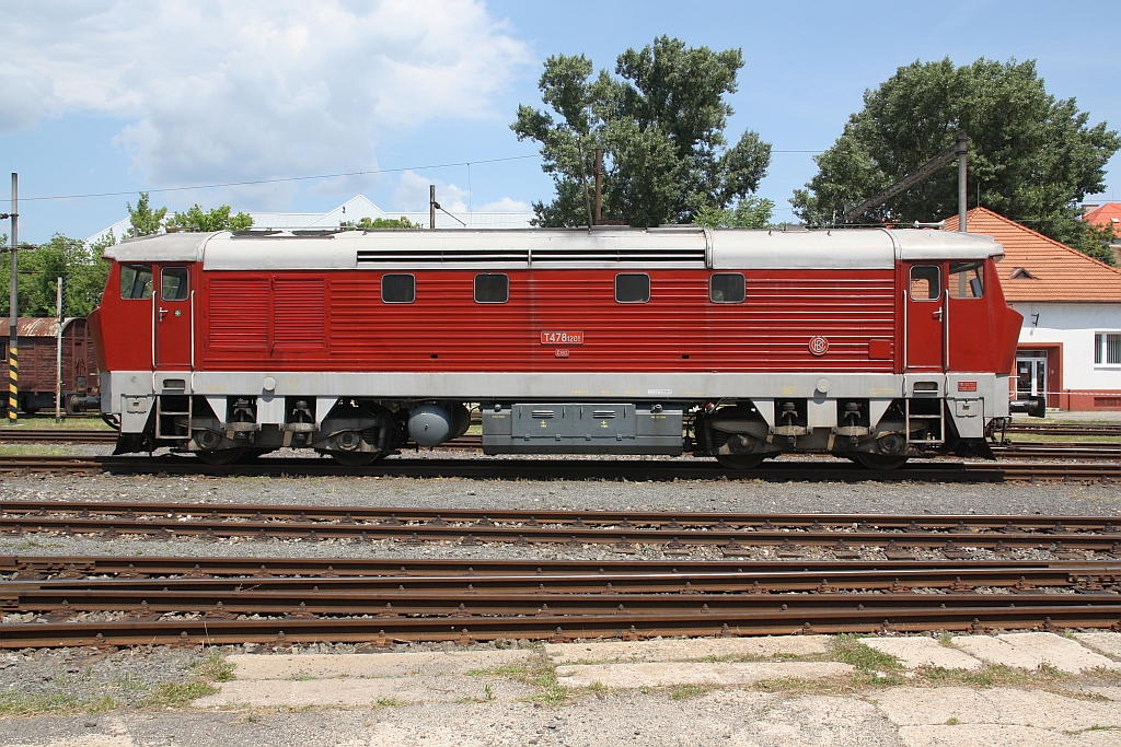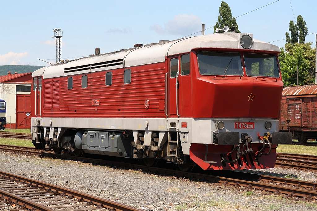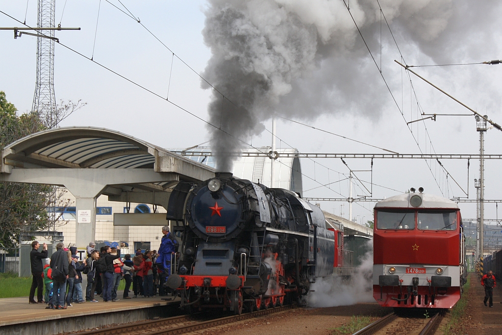 498 104 und ZSSKC 751 201-5, vermietet an den Albatros-Klub Bratislava und angeschrieben als CSD T478 1201, am 12.April 2014 Bf. Bratislava Petrzalka. Karl Seltenhammer