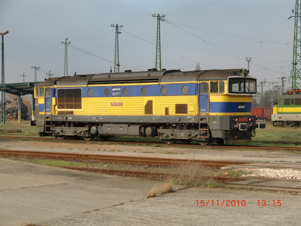 "Taucherbrille" auf Abwegen: 753 705-3, welche vom in Mährisch Ostrau ansässigen Unternehmen Advanced World Transport betrieben wird, war am 15.11.2010 auf dem Frachtenbahnhof des ungarischen Grenzortes Hegyeshalom abgestellt. Christian Bünker