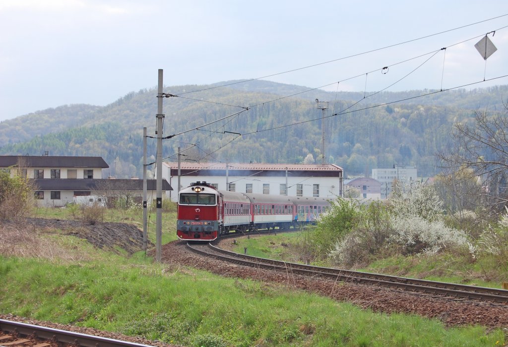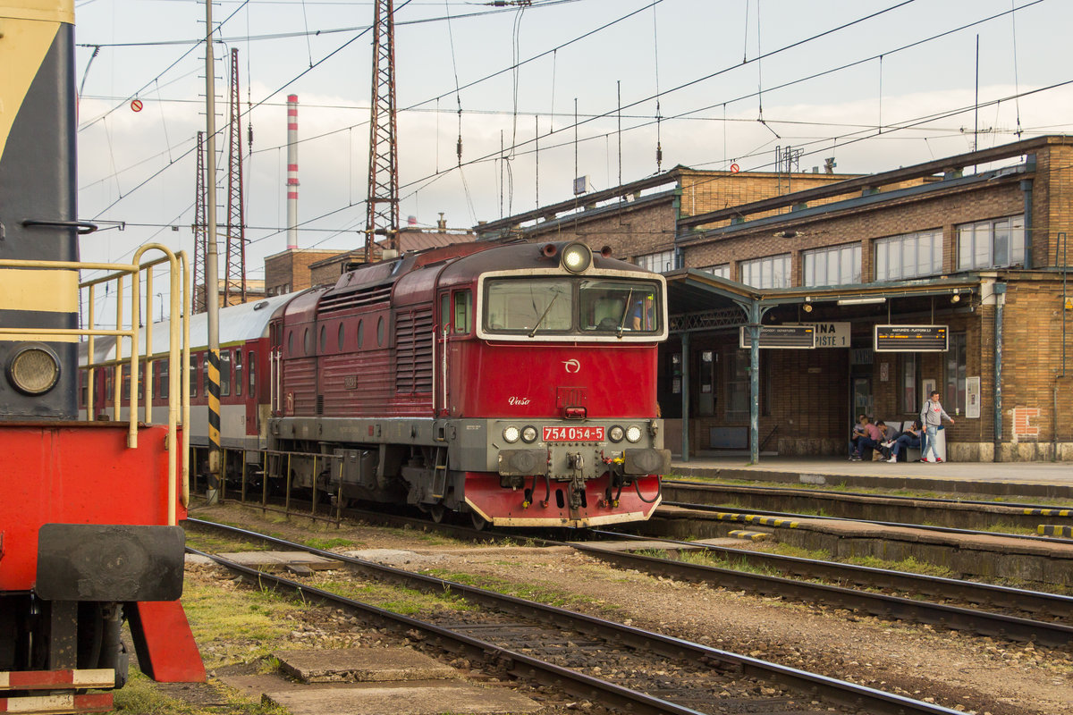 754 054-5 als Fernzug R 342 „Fatra“ Banská Bystrica/Neusohl (13:34) – Vrútky/Ruttek – Žilina/Sillein (11:05/11:27) – Čadca (SK) – Návsí/Nawsie (CZ) – Bohumín/Oderberg – Ostrava-Svinov (17:15);  07.10.2019