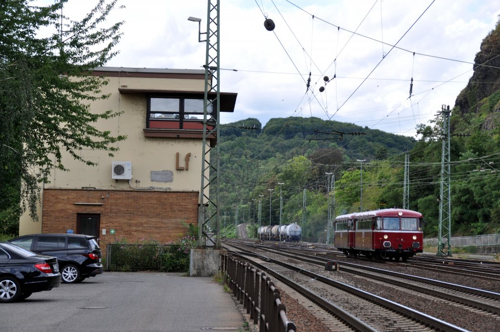 798 752-2 der Kasbachtalbahn (Eigentümer ist die EVG - Eifelbahn Verkehrsgesellschaft mbH) am 02.09.2012 bei der Einfahrt in den Bahnhof Linz am Rhein.