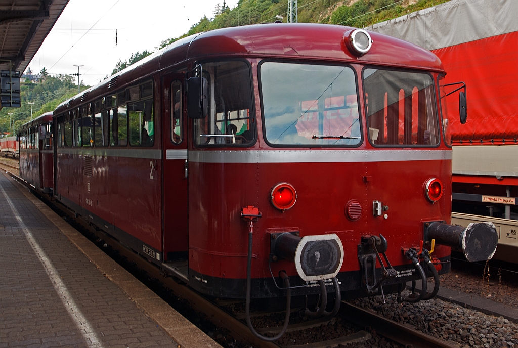 Uerdinger Schienenbus Garnitur 798 752-2 und 798 760-5 (zweimotorig) der Kasbachtalbahn (Eigentum der Eifelbahn) stehen, am 21.08.2011, im Bf Linz zur Abfahrt nach Kalenborn bereit. Armin Schwarz