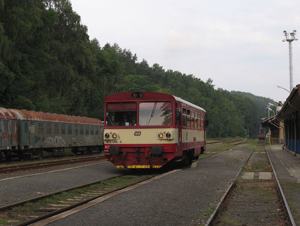 Mit einem Flügelsignal und eine alte Blockstelle als Hintergrund fahrt 810 545-4 mit Os 5465 Stará Paka-Jaroměř ein auf Bahnhof Dvůr Králové nad Labem am 4-8-2011. Date Jan de Vries