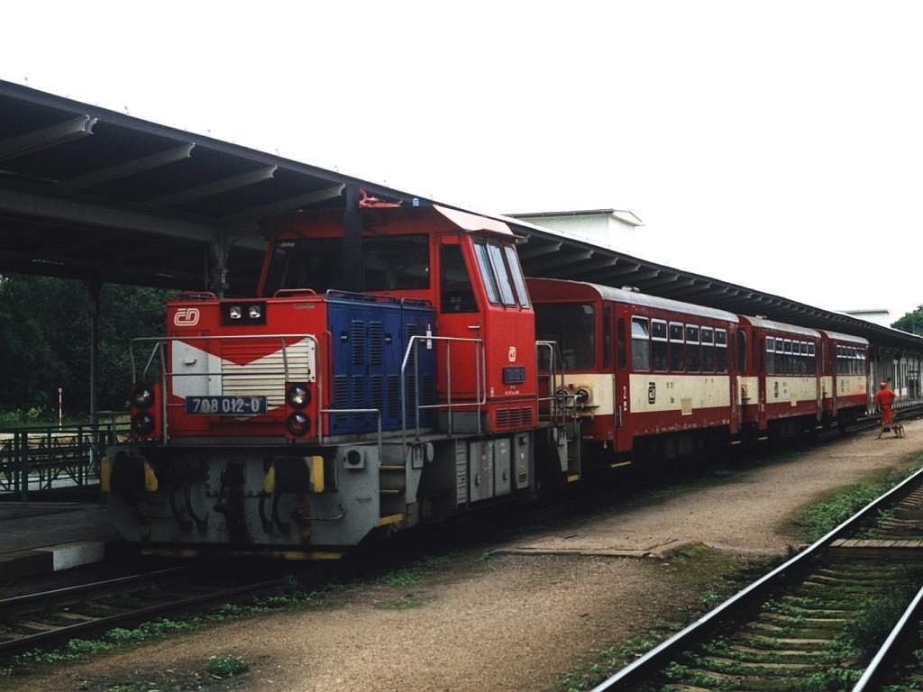 708 012-0, 810 652-8, 010 211-1 und 010 123-8 auf Bahnhof Liberec am 20-7-2005. Bild und scan: Date Jan de Vries.