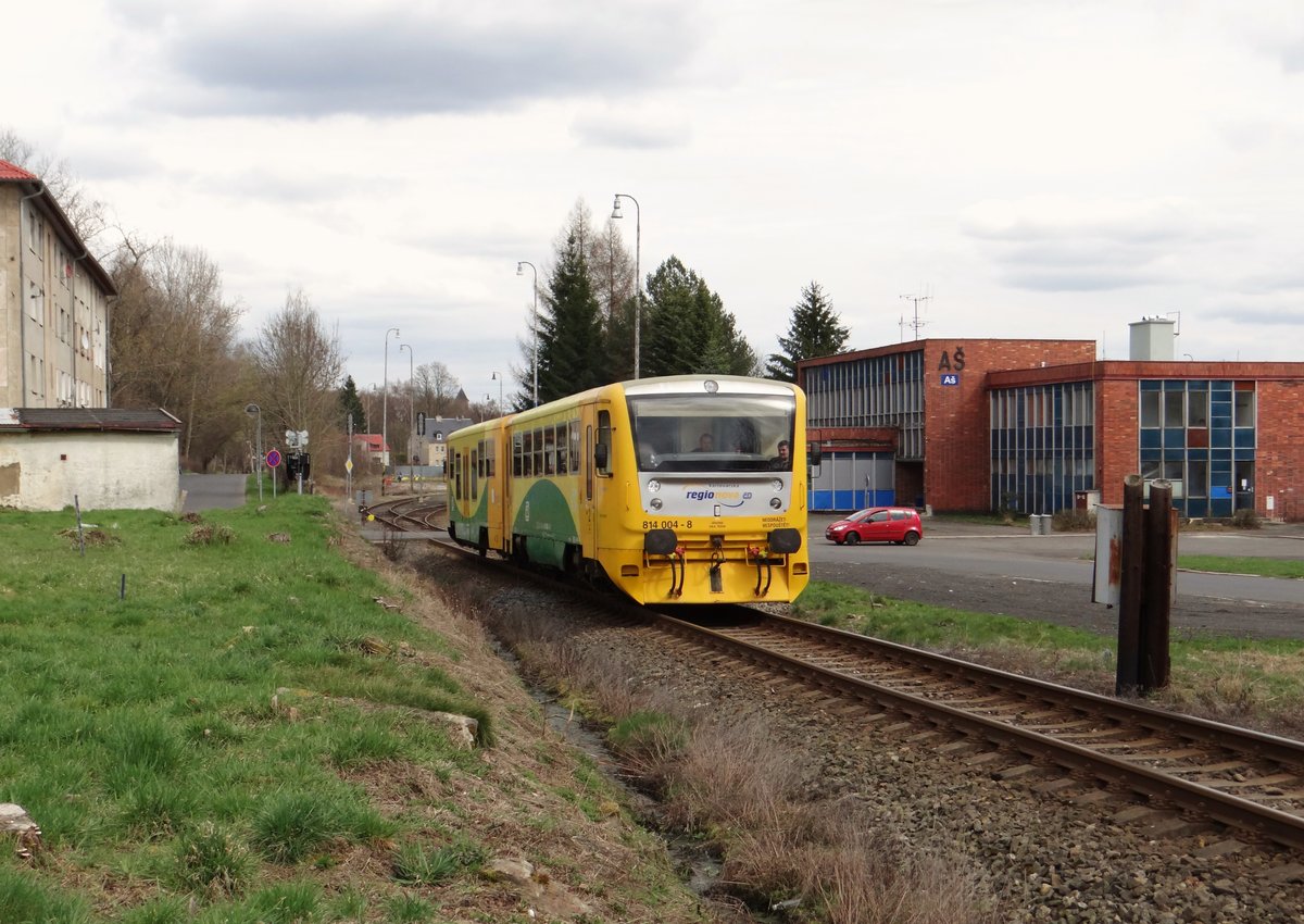 814 004-8 mit dem Os 17206 bei der Ausfahrt in Aš am 08.04.16.