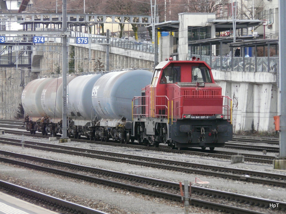 SBB - Diesellok Am 841 037-5 bei Rangierfahrt im Bahnhof Spiez am 25.02.2011