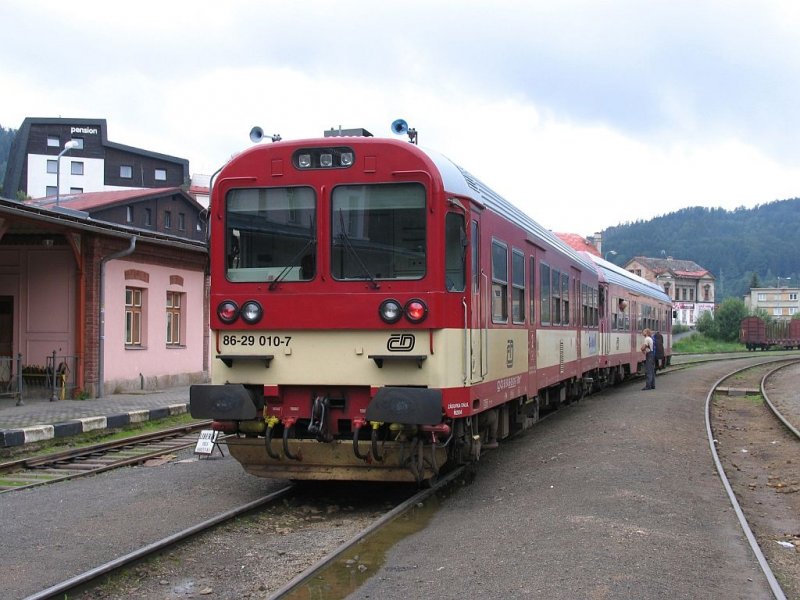 86-29 010-7 und 843 009-2 mit Os 16220 Harrachov-Liberec auf Bahnhof Tanvald am 12-7-2009.