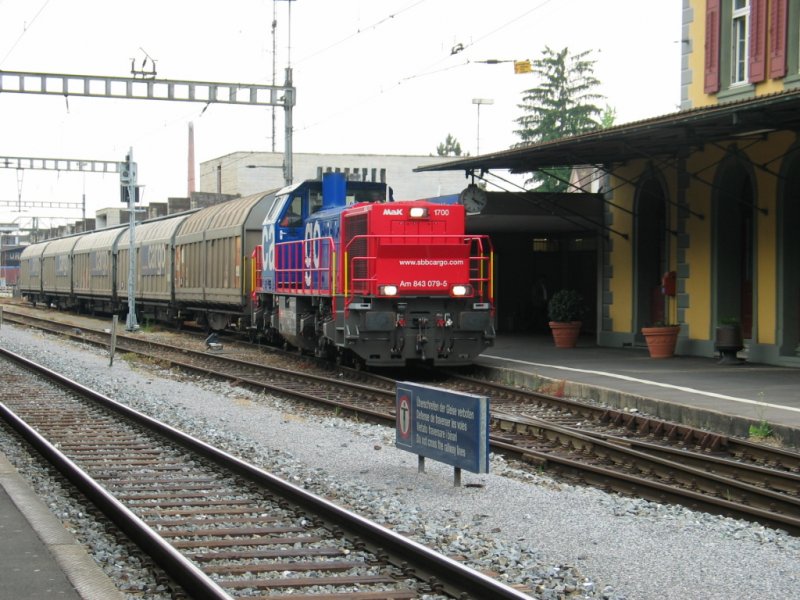 SBB - Loktreff Tm 2/2 232 143-8 und Bm 4/4 18445 und Am 843 079-5 im SBB Güterbahnhof Biel am 08.07.2012 .. Standpunkt des Fotografen auf einer Strasse .. Hp. Teutschmann