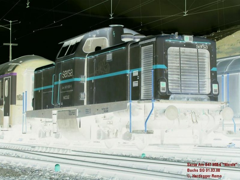 Spezial-Ansicht der V 100 Am 847 958-6 ex 211 118 der Baufirma Sersa :-) Buchs SG 01.03.08