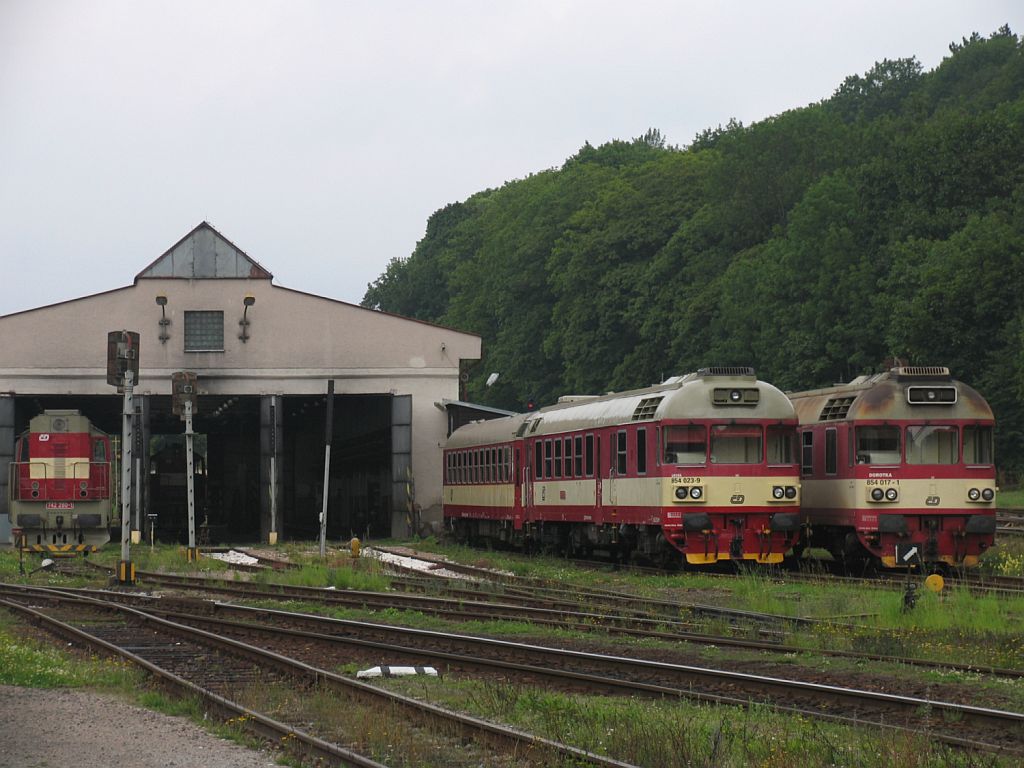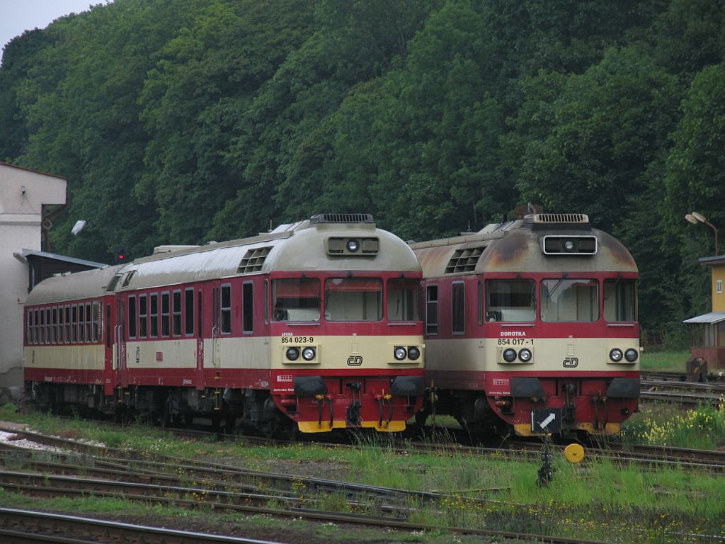 854 023-9 und 854 017-1 bei Bahnbetriebswerke Trutnov am 7-8-2011.