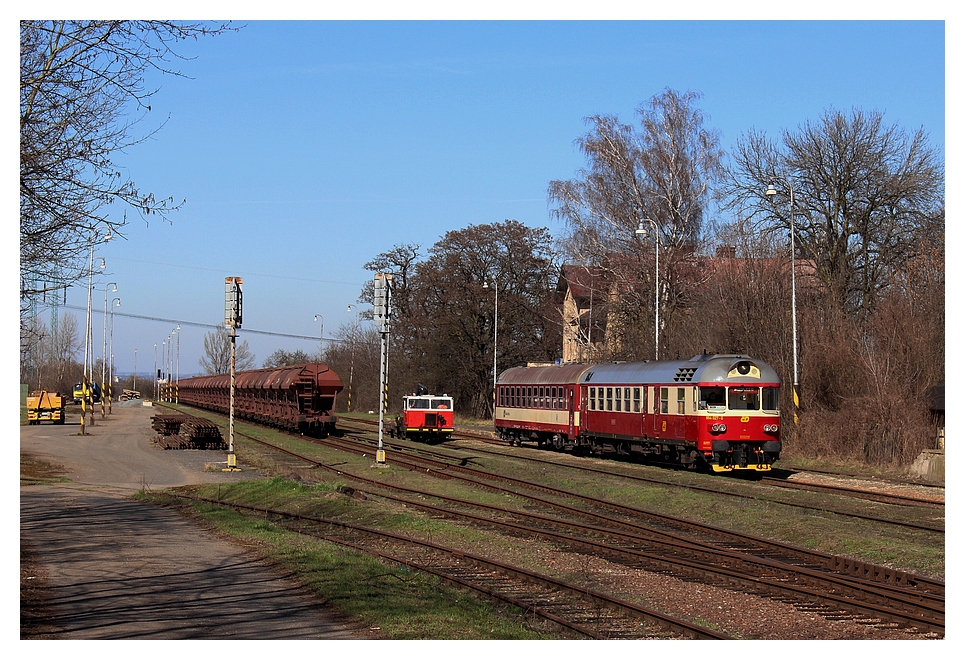 854 027-0 mit den MOs 9511 im Bf Měšice u Prahy nach Praha-Vršovice 20.03.2014