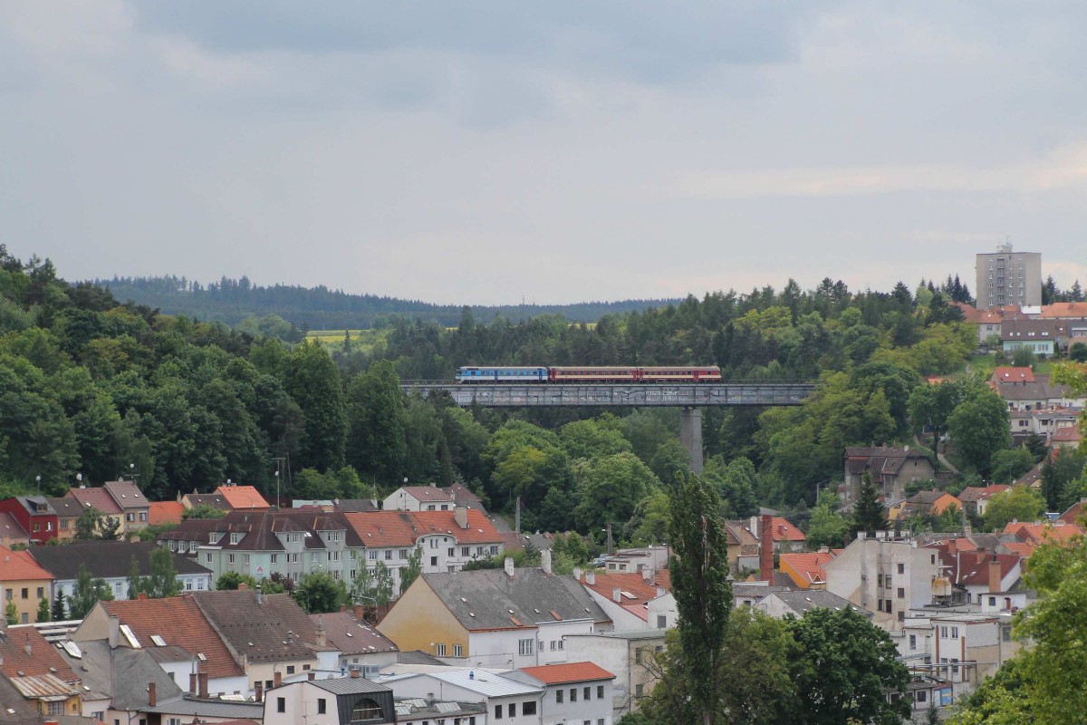 CD 854 206-0 als OS 4810 (Brno hl.n. – Jihlava) am 15.August 2018 im Bahnhof Namest nad Oslavou.