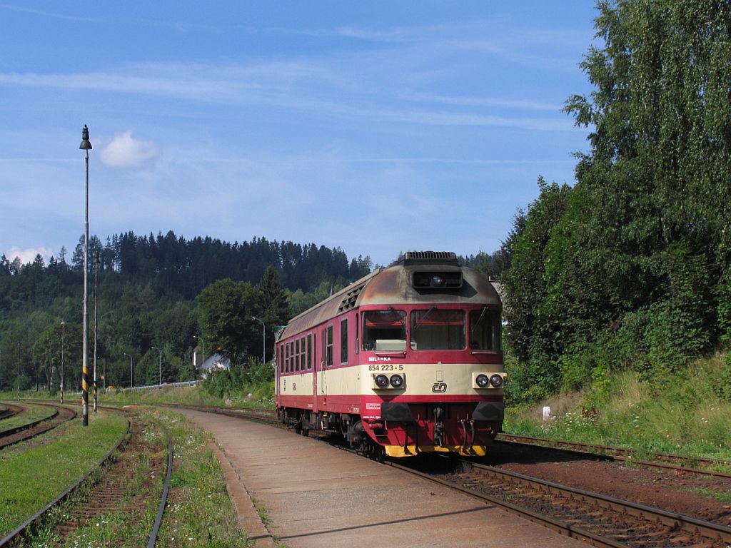854 223-5 mit Os 6320 Liberec-Frydlant v Cechach auf Bahnhof Liberec am 11-7-2007.