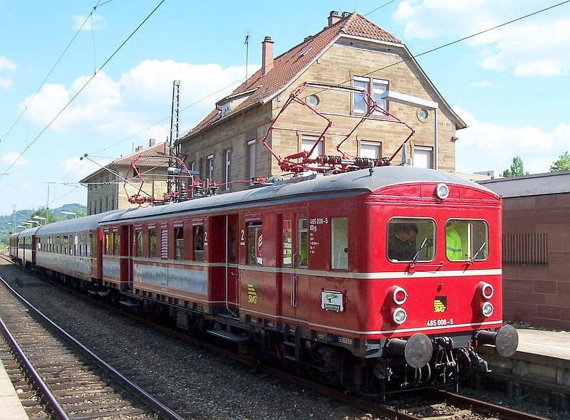 ET 465 006-5 der SVG am 06.05.2007 in Endersbach, Strecke Stuttgart - Schorndorf, von vorn nach hinten: Motorwagen BDyg 465 006-5, Gesellschaftswagen, hier als Fahrradwagen genutzt, ist nicht Bestandteil des Orginal-ET 65, Zwischenwagen Byg 865 006-1 und Steuerwagen AByg 865 606-8. Günther Glauz