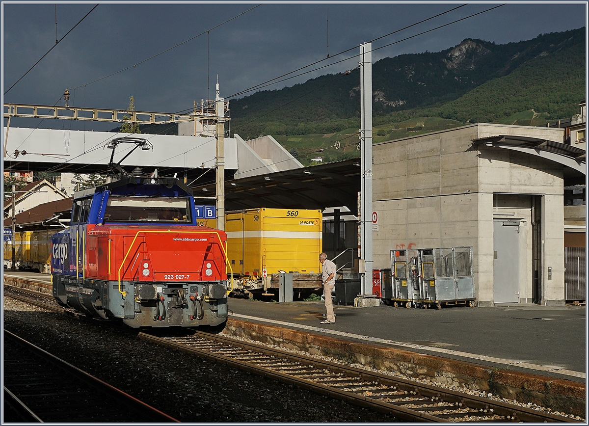 Die SBB Cargo Eem 923 027-7 ranigert in Sierre.