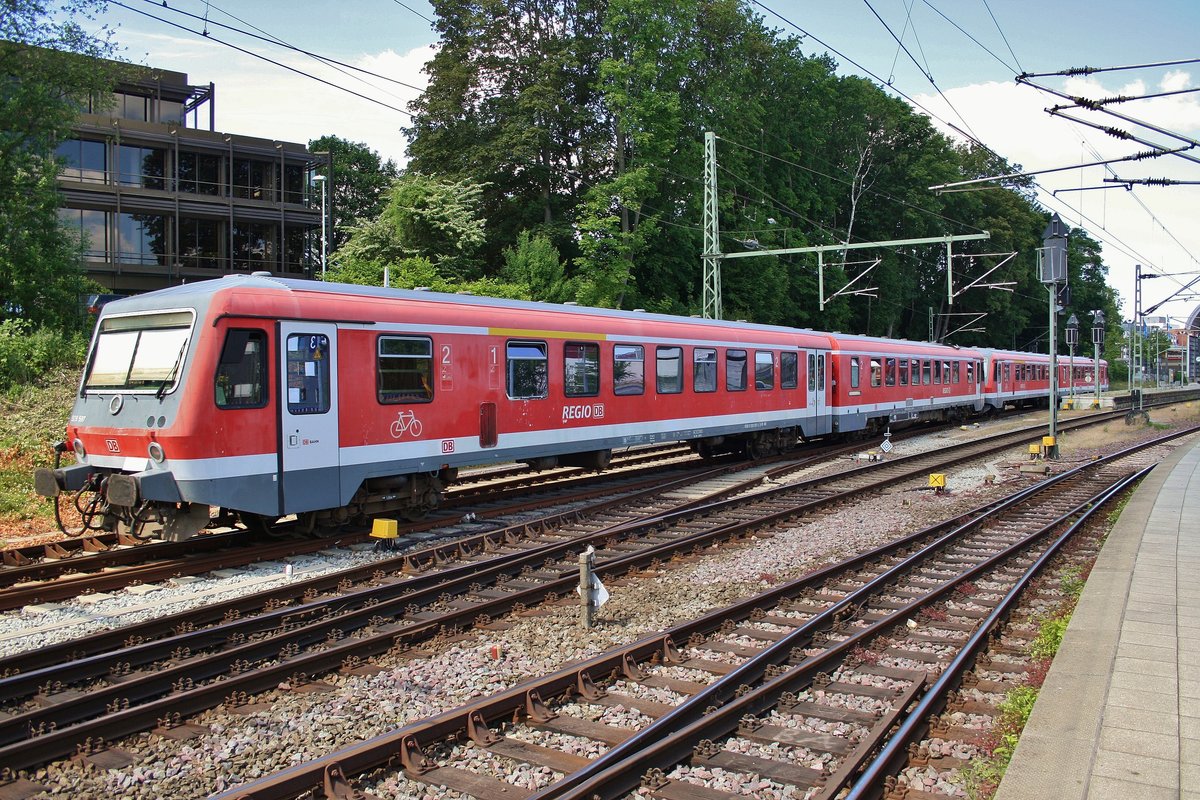 928 597-3 und 628 625-5 erreichen am 17.6.2017 als RB75 (RB21273) von Rendsburg den Kieler Hauptbahnhof.
