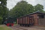 Druckluft / Kompressors Lokomotive aus dem Bergbau, abgestellt bei einem Maschienen Bauer in Eygelshoven NL, gesehen und Fotografiert am 17.05.2024 Jürgen Senz