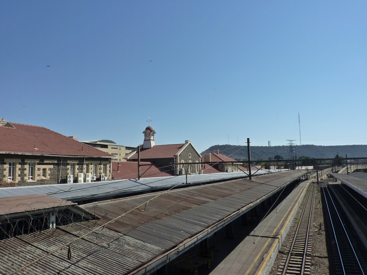 Die Anzahl der Gleise zeugt noch von der einstigen Bedeutung des Bahnknotens Bloemfontein. Trotz des sehr geringen Verkehrsaufkommen ist der Bahnhof sehr gepflegt. Aufgneommen am 05.09.2014. Matthias Handschuch