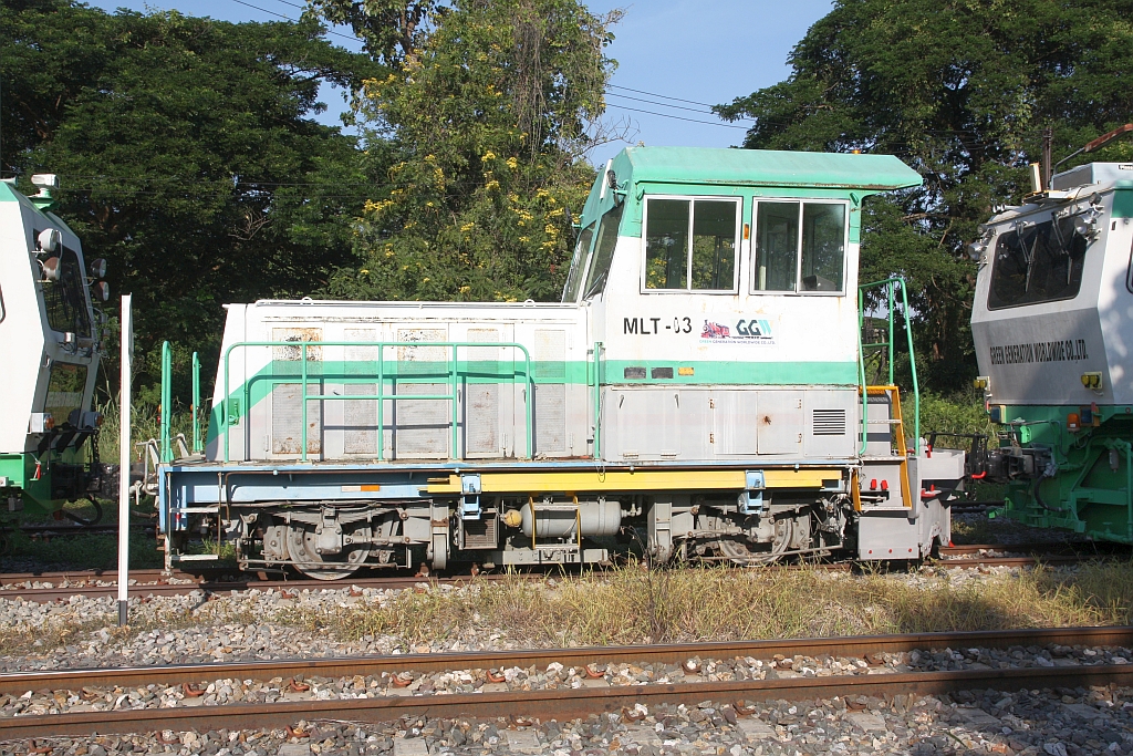 Am 27.November 2025 war in der Kanchanaburi Station dieser Schwerkleinwagen (Hersteller: Fuji Heavy Industries, Type TMC400A, Baujahr: 1991, Fab.Nr.: 5) mit der Betriebsnummer MLT-03 des Unternehmens GGW (Green Generation Worldwide Co.,Ltd.) zu sehen. Karl Seltenhammer