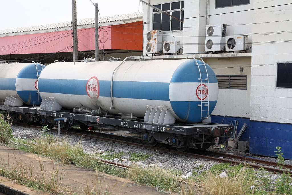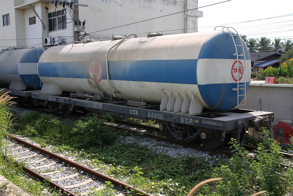 บ.ซ.ล. 444191 (บ.ซ.ล. =B.C.P./Bogie Cement Pressure Discharge Wagon; Meishan - China, Bauj. 1995, Fab.Nr. 057) am 05.Dezember 2024 auf dem Anschlußgleis zur Firma TPI.Concrete in der Preng Station.