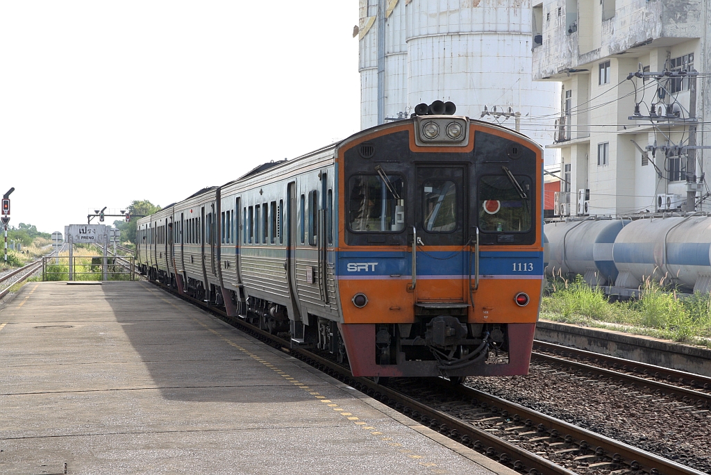 ORD 281 (Hua Lampong - Kabin Buri) mit dem THN 1113 (1A'2', dh, Tokyu, Bj.1983) als letztes Fahrzeug fährt am 05.Dezember 2024 aus der Preng Station.