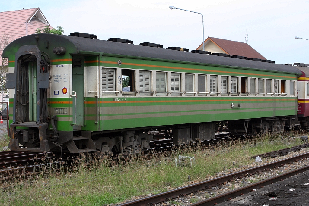 บนอ.ป.1009 (บนอ.ป.=ANF./Air-Conditioned First Class Day & Night Coach, Baujahr 1997, Hyundai/Korea) am 09.Jänner 2023 in der Trang Station. Karl Seltenhammer