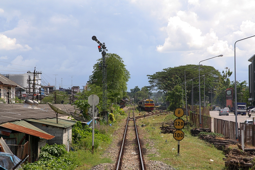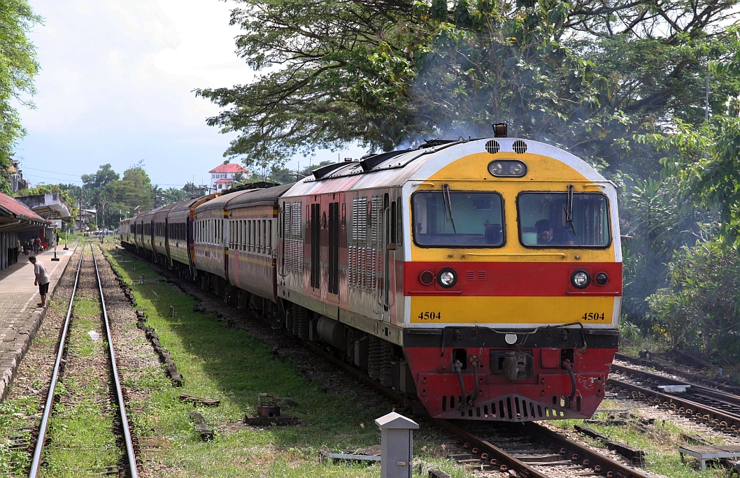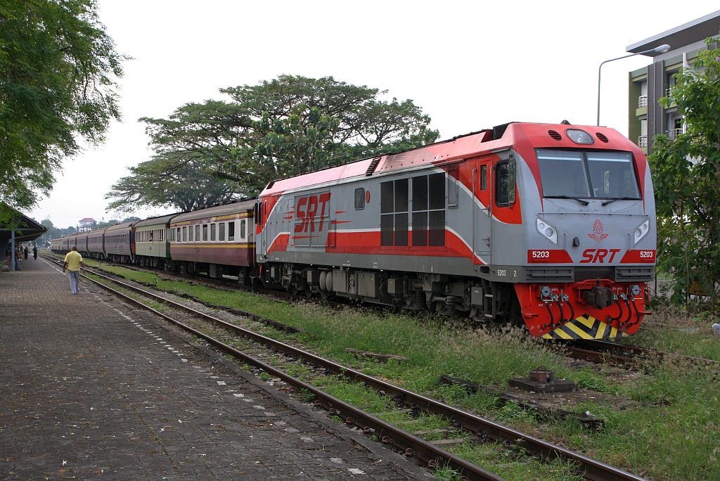 QSY 5203 (Co'Co', de, CRRC Qishuyan, Bj.2021) wartet am 09.Jänner 2023 mit dem EXP 84 nach Bangkok in der Trang Station auf die Abfahrt um 17:00. Karl Seltenhammer