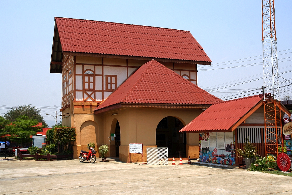 Deutlich sichtbar ist der deutsche Einfluss beim Bau der Northern Line am Aufnahmsgebäudes des Bf. Ban Pin. Die strassenseitige Fachwerkfassade, aufgenommen am 08.Jänner 2011. Karl Seltenhammer