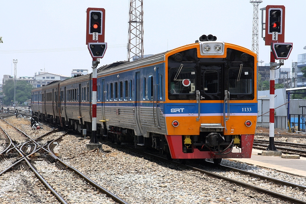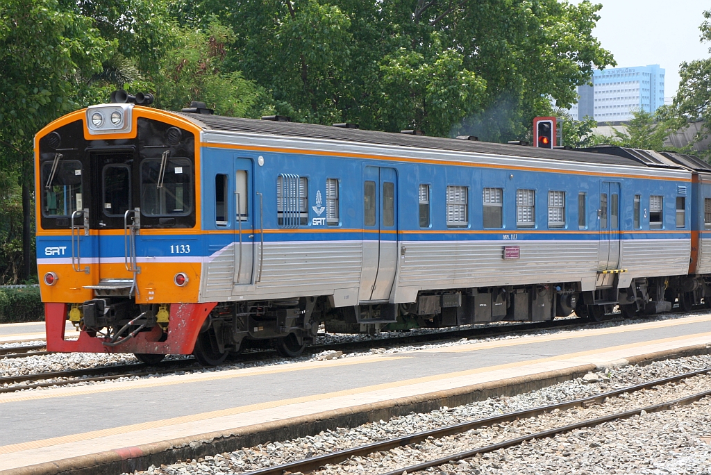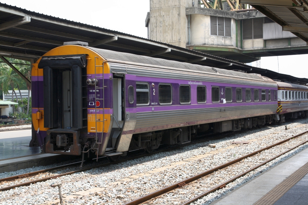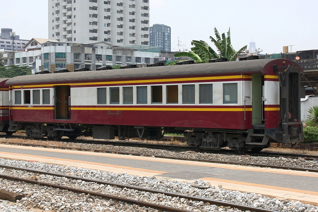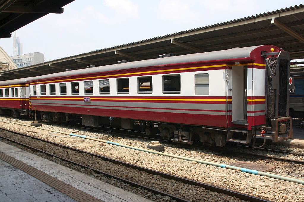 2016 wurden von den JR Hokkaido 10 Wagen (Oha 14 503, 507, 508, 510, 531, Suha 14 506, 509, 551, 555, 556), welche zuletzt im Hamanasu Express eingesetzt waren und 2016 aus Dienst gestellt wurden, an die SRT übergeben, verschifft und am 25. November 2016 im thailändischen Hafen Laem Chabang entladen. - Nachdem seit 17.August 2024 die erste, 5-teilige Garnitur mit der Bezeichnung Royal Blossom für höherwertige Ausflugs- und Charterfahrten zur Verfügung steht war am 05.Dezember 2024 in der Hua Lamphong Station auch die zweite, allerdings nur 4-teilige, Garnitur zu bewundern. - Das Bild zeigt den บจพ.ป.432 (บจพ.ป.=ARS./Air-Conditioned Reserved Saloon) im Vordergrund und dahinter den บจพ.ป.431 (บจพ.ป.=ARS./Air-Conditioned Reserved Saloon). Karl Seltenhammer