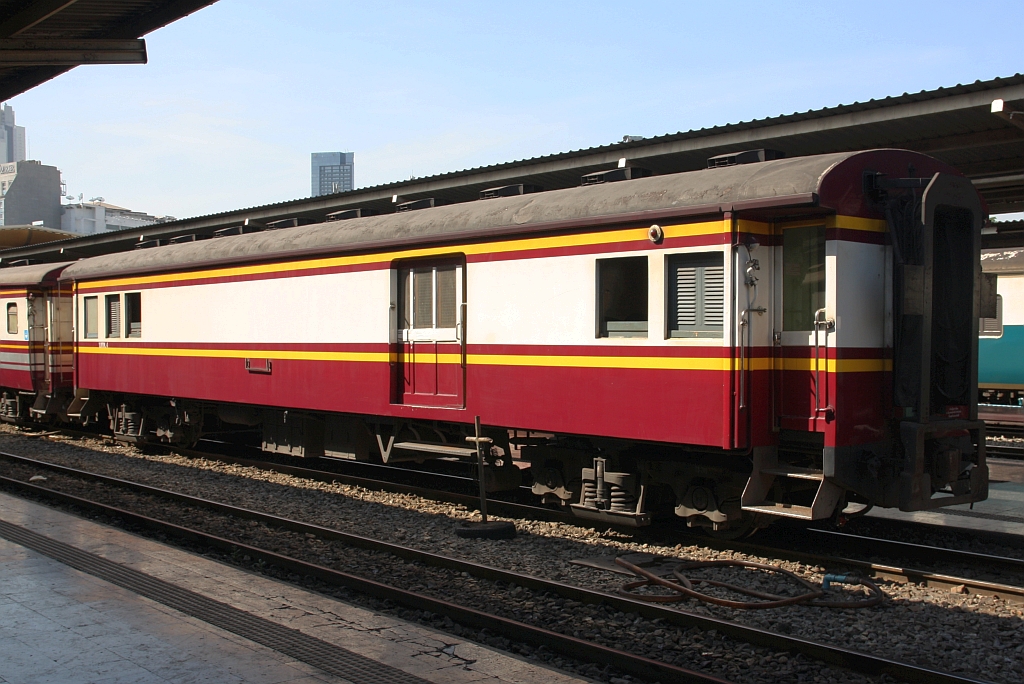 บฟก.ป. 1106 (บฟก.ป.=APVC/Air-Conditioned Power Van) als Generatorwagen der zweiten Royal Blossom Garnitur am 05.Dezember 2024 in der Hua Lamphong Station. Karl Seltenhammer