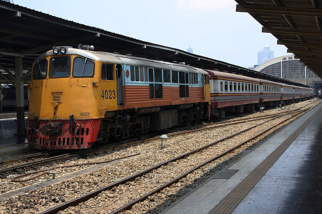 GEK 4016 (Co'Co', de, General Electric, Bj.1963, Fab.Nr. 34865) am 26.März 2025 als Verschubreserve der Hua Lamphong Station bei der Arbeit. Karl Seltenhammer